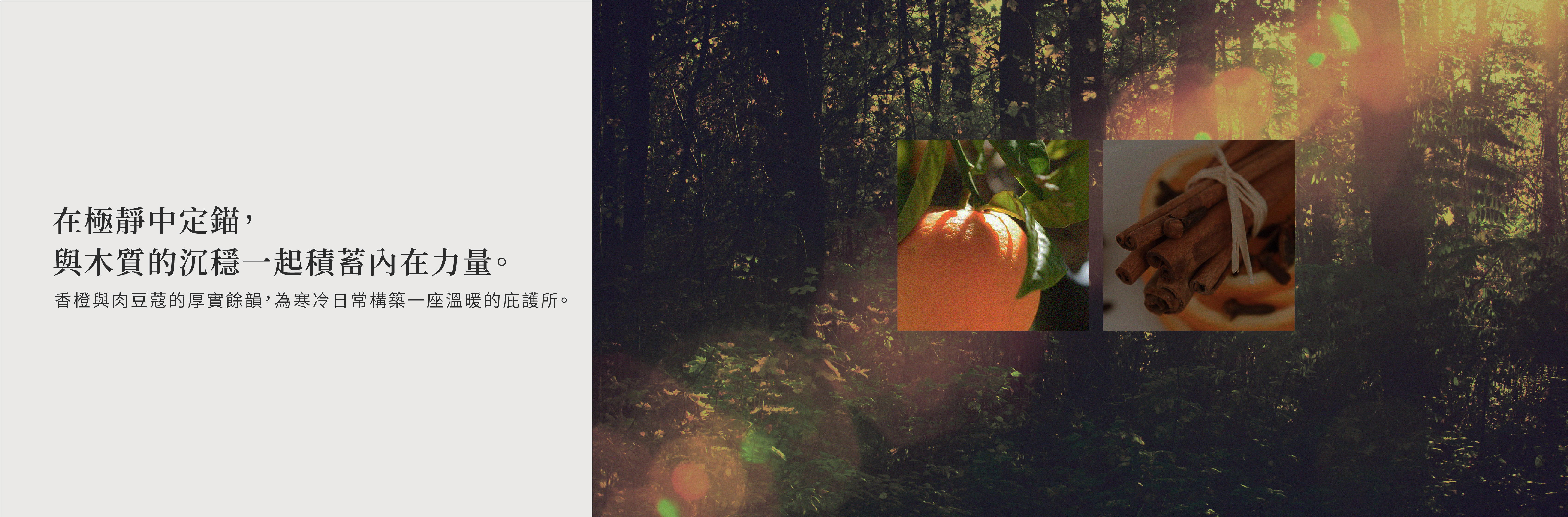 甜橙與肉豆蔻結合檀香,重現大地深沉穩定的歸屬感。