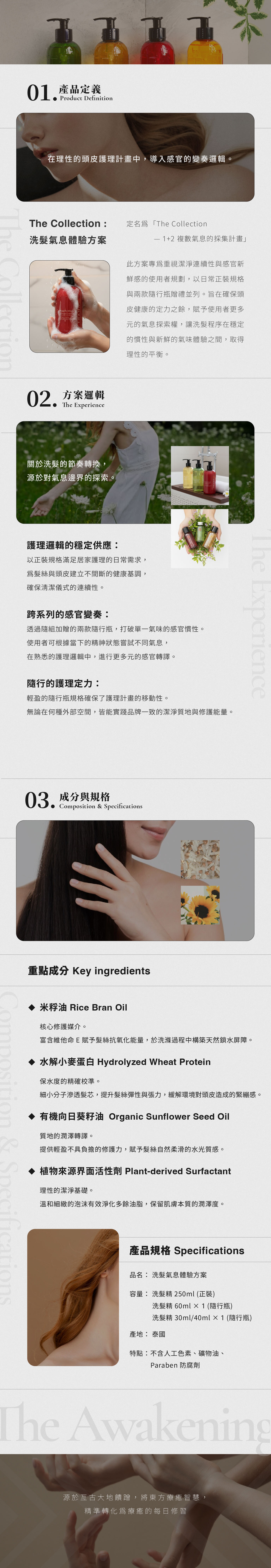 以正裝瓶定錨日常的清潔頻率,並輔以兩款小容量的氣息體驗。這是一個關於「感官採集」的配置,讓洗髮程序在穩定的慣性與新鮮的氣味體驗之間,豐富洗髮體驗。