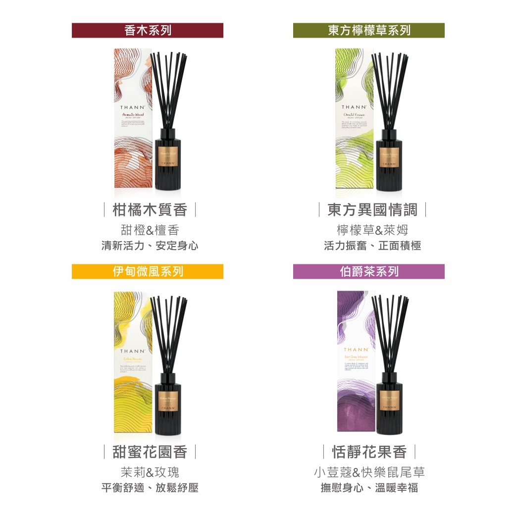 溫暖微辛的小豆蔻及舒緩放鬆的薰衣草,猶如溫柔的擁抱既溫暖且慵懶,融合快樂鼠尾草與柑橘的獨特香氣,如沐幸福快樂的迷人氛圍裡。THANN伯爵茶精油擴香瓶