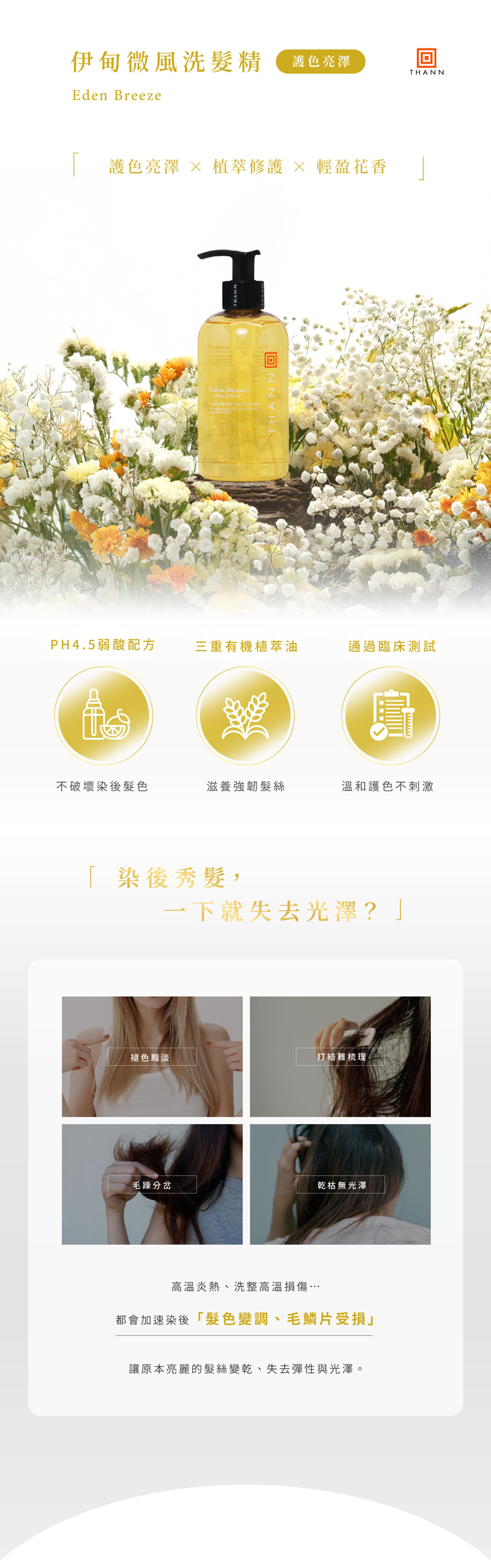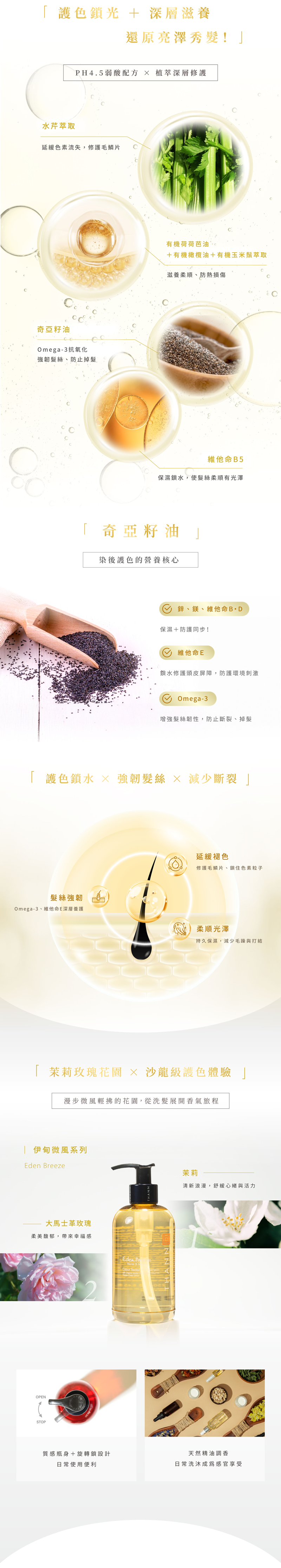 .乾性頭皮/染燙受損髮絲:伊甸微風-護色亮澤